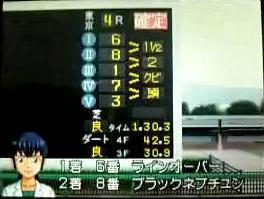 東京1600 晴 良 コースレコード 1.30.8 キングポニョ B組 ▲-▲▲▲ キンタロウマケルナ 柴山 ◎ 差 △---- エルザフィールド 藤岡佑 ○ 差 J -▲△-○ インビジブルベル 四位 ◎ 差 ----- ストールメイス 江田照 ◎ 先 ◎△-○◎ キキウウエ 武豊 ◎ 先 △◎◎△△ ラインオーバー 武士沢 △ 追 ○○○◎△ バオバブ 安藤勝 ○ 差 ----- ブラックネプチュン 岩田 ○ 差 乗り代わりは無し 首振り無し 東京芝1600 B組がが始まります。 まだまだ上位に食い込むことが可能な位置に 皆さんいらっしゃいます。 ジョーカーを使っているエルザフィールドは 印こそないものの、内枠に入り高得点を狙いたい所。 やまとらさんは内枠独り占め♪ すごい印を取っているのがラインオーバー。 よっしさんの高速馬がここで勝利を収めるか? また2番手のバオバブ、キキウウエと このレースでも印がいい馬ほど外枠よりになってます。 未だに2頭とも着外がないふふふさん、 3連続W入線の記録を作れるか? それでは、東京1600 B組 まもなくスタートです。 おっと、スタートでストールメイスが出遅れました。 ハナを奪ったのはブラックネプチュン、続いてキキウウエです。 85-[7312]6-4 直線に入るとブラックネプチュンが後続を突き放しにかかります! 後続が400m地点に差し掛かる所でさらにブラックネプチュンが加速!! あっという間に見えなくなりましたね、後続が...。 実況ではラインオーバー、キキウウエ、 さらにはキンタロウマケルナ、インビジブルベルが追い上げてくる。 ブラックネプチュンが先頭! ラインオーバーがものすごい脚であがってきた~~~ あっという間にラインオーバーが差しきった~~~~!!! 東京 1600 晴 良 B組 15p 1着 ラインオーバー TIME 1.30.3(R) 4F-42.5 3F-30.9 10p 2着 ブラックネプチュン 1 1/2 08p 3着 キンタロウマケルナ 2 05p 4着 バオバブ クビ 03p 5着 インビジブルベル 頭 着外 それぞれ 1p 獲得 東京マイルをブラックネプチュンが逃げ切るのか? と思うくらい快調に逃げていて、これはいけるかと思ったら、 画面が後方にパンしたと思ったら、 ラインオーバーが実況する内容がないくらい 一瞬の切れ味であっという間にブラックネプチュンを抜き去り ひっそりレコードでゴール! よっしさんはひっそり初勝利ですね♪ ブラックネプチュンは粘って2着、またもや インビジブルベルも5位に入り、着外無しの連続記録を伸ばしました♪ しかしふふふさんは勝利が遠いです。 内枠にいたキンタロウマケルナが3着、 しかしジョーカーを使用したエルザフィールドがまさかの着外... やまとらさん、これは痛い展開です。 本日呉オークス優勝という栄誉を戴冠したバオバブは ちょっと休憩の4着、キキウウエが着外と言うことで ひっそりBC連覇はちょっときびしいか? (ミズサンオメ!) 素点順位(東京1600 BC組終了時) 16p ムズムズムズム 16p おてんば娘's 13p ダート苦手ーズ 13p 鈴と黒 11p 海と空の番人 09p 博打依存症 06p 未定(ミズさん) 04p ダーティーペア 総合順位(東京1600 BC組終了時) 77p ヘルミッショネルズ (77p) 74p ムズムズムズム (13+15p×4+1=74p) 67p D-Angel (67p) 66p 鈴と黒 (53+10p+3p=66p) 65p 未定(ミズさん) (59+5p+1p=65p) 50p 海と空の番人 (39+10p+1p=50p) 42p 博打依存症 (32+8p+1p×2=42p) 41p おてんば娘's (25p+15p+1p=41p) 32p いとをかし (32p) 29p ダート苦手ーズ (8+8p×2+5p=29p) 25p マイラーズ (25p) 17p ダーティーペア (13+3p+1p=17p) 競走馬ランキング(東京1600 BC組終了時) 30p ティルピッツ (1/4/2) 26p コアリズム (2/外/1) 26p ラインオーバー (3/5/1) 26p ブラックネプチュン (3/3/2) 21p バオバブ (1/外/4) 20p ウッチーハミエル (4/1) 19p キンタロウマケルナ (外/2/3) 16p インビジブルベル (2/5/5) 16p アヴァロン (3/3) 16p ブラスレイダー (外/1) 16p チーズオカキ (1/外) 15p ティルフィング (4/2) 14p キキウウエ (5/2/外) 12p エルザフィールド (2/外/外) 11p ディーヴィディ (4/5/5) 11p ルナウラジミール (外/4/4) 10p ルナエスプリーク (外/外/3) 09p グローイングアップ (外/3) 07p ストールメイス (外/4/外) 05p メッサーシュミット (5/外/外) 04p ベビースター (5/外) 03p ストイシズム (外/外/外) 03p ズミーファイユー (外/外/外) 02p ウッチーラファエル (外/外) PR