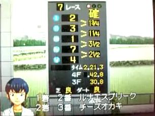 パス打ちの順番はある一定の法則にしたがって パターン6 2位・4位・3位・1位 でパス打ちしていきます。 では、阪神2400 A組のレースを開始します。 阪神2400 晴 良 コースレコード 2.15.3 コアリズム A組 ◎▲▲◎- ストイシズム 幸 ◎ 先 ▲△--▲ ルナエスプリーク 大庭 ◎ 差 ----◎ チーズオカキ 郷原 ○ 差 ○○○○○ ルナウラジミール 田面木 ○ 先 J △◎△-△ ベビースター 津村 ○ 差 J △--△- コアリズム 柴田大 △ 差 --◎▲△ ラインオーバー 武士沢 △ 追 ----- ストールメイス 江田照 ◎ 先 J 乗り代わり 無し 首振り 6番 ひっそりBCダブルス、最終レースA組です B組終了後時点で総合ポイントトップは☆TSUSHIさんの ヘルミッショネルズで90p。 A組で逆転可能なのは、 たましさんのムズムズムズムチームとともっぷさんのいとをかしチームです。 たましさんは1着5着or2着3着なら逆転できます。 内枠のストイシズム、コースレコードをもつコアリズムでいけるか? もっぷさんはジョーカーが残っているので、J-1着4着orJ-2着1着なら 逆転できます。内枠のチーズオカキ、左2◎のベビースターで逆転Vを狙います! ただ、どちらも2頭とも頑張らなければいけないのは苦しいところですが。 印状況はジョーカー使いのルナウラジミールもにいい感じです。 ストールメイスは大外で厳しいか? 長くかかりましたひっそりダブルスも最終レースです。 どの馬も悔いなく走って頂きたいですね。 それでは、阪神2400 A組 まもなくスタートです。 スタートです。 あ~っと!コアリズムちょっと出遅れた! どの馬も積極的には前に出ない展開、 チーズオカキが前に押し出されました。 2番手にはベビースターともっぷさんの馬がレースを作ります。 先頭から末尾まで9馬身というところです。 [35][8214]-7-6 直線に入ったところでチーズオカキが抜け出す~! 残り200mあたりで2番手集団から2頭連れて飛び出してきてるぞ~~ ルナエスプリークとストイシズムだ~~~~~ いい伸びをしています! ここでチーズオカキ、最終兵器発動!! ルナエスプリークはするっと交わす! ストイシズムは食らってしまった~~~~~! ごーーーーーーーーる!!! 阪神2400 晴 良 A組 15p 1着 ルナエスプリーク TIME 2.21.3 4F-42.8 3F-30.8 10p 2着 チーズオカキ 1 3/4 08p 3着 ストイシズム 1 1/4 05p 4着 ラインオーバー 3 1/2 03p 5着 ルナウラジミール 2 1/2 着外 それぞれ 1p 獲得 ルナエスプリークが豪快に差しきりました。 2着には尻技あり(?)のチーズオカキ、3着はストイシズムと 内枠3頭での1・2・3だー! 4着には追い込み馬ラインオーバー、5着にはまたまたげっこうさんの ルナウラジミールと げっこうさんは、後半戦にエンジン全開ですね。 しかし... げっこうさんのジョーカーが5着、 もっぷさんとたましさんのジョーカーが着外と残念な結果に・・・ これでひっそりBCの全レースが終了致しました。 これから、集計に入りますので少々お待ち下さい。 PR