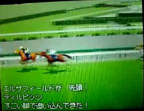B組 △△-△- エルザフィールド 藤岡佑 ○ 差 △▲▲▲△ ティルピッツ 村田 ○ 差 ▲◎◎○▲ ウッチーラファエル 熊沢 ◎ 追 ----- ブラックネプチュン 岩田 ○ 差 --△-△ キンタロウマケルナ 柴山 ◎ 差 ----○ インビジブルベル 四位 ◎ 差 ◎---◎ メッサーシュミット 武豊 ◎ 先 ○○○◎- ウッチーハミエル ペリエ ◎ 差 乗り代わり 8番 首振り 無し ひっそりBCダブルス、最終レースB組です C組終了後時点で総合ポイントトップは☆TSUSHIさんの ヘルミッショネルズで90p。 B組で逆転可能なのは、 うっちーさんD-Angelチームととふふふさんの鈴と黒チームです。 うっちさーんは1着取るか、2着4着までなら逆転できます。 ふふふさんは1・2フィニッシュで決めて、91pというかなり厳しい条件! ふふふさんが奇跡を見せるのか 印状況はわりといい印の馬が内枠を独占してます。 ハミエルが大外なのがきになります。 どの馬もチームポイントを上位にするため頑張ってほしいですね。 それでは、阪神2400 B組 まもなくスタートです。 そろったスタートです。 押し出されるようにエルザフィールドが前に出ました。 続いてブラックネプチュンがいきます。 一番人気のウッチーハミエルは後ろからいきますね 142[58][36]7 直線に入ったところでエルザフィールドがスパートをかける! インビジブルベルもあがっていった~~~ と思ったら、ティルピッツがあがっていくと同時に逆噴射だ~~~ ふふふさん、さよ~なら~~~~~~ ウッチーハミエル&ラファエルの姿がなかなか見えないぞ 残り200mを切ったが、先頭はエルザフィールド! 2番手はティルピッツ!!差は4~5馬身か? ゴール前ティルピッツがエルザフィールドに襲い掛かる! あまりのスピードに写真がティルピッツのところだけぶれてます。 あっという間に抜き去った~~~~ 阪神2400 晴 良 B組 15p 1着 ティルピッツ TIME 2.24.0 4F-43.2 3F-30.9 10p 2着 エルザフィールド 1 1/4 08p 3着 キンタロウマケルナ 1 1/4 05p 4着 ウッチーラファエル クビ 03p 5着 ウッチーハミエル 3/4 着外 それぞれ 1p 獲得 ティルピッツが一気に差しきりました~~~ ティルピッツはこれで2勝目です! 2着3着はやまとらさんのエルザさんとキンタさん、 4着5着はうっちーさんのラファエルとハミエルがそれぞれ入線。 これでは☆TSUSHIさんに追いつきません。 ふふふさんの逆転優勝と4戦すべて入線の記録が ともに泡と消えてしまいました・・・残念! 総合順位(阪神2400 BC組終了時) 90p ヘルミッショネルズ (79+10p+1p=90p) 84p D-Angel (76+5p+3p=84p) 74p ムズムズムズム (13+15p×4+1=74p) 74p 未定(ミズさん) (65+8p+1p=74p) 68p 鈴と黒 (66+1p+1p=68p) 66p 海と空の番人 (50+15p+1p=66p) 60p 博打依存症 (42+10p+8p=60p) 57p いとをかし (32+15p+10p=57p) 44p マイラーズ (36+5p+3p=44p) 41p おてんば娘's (25p+15p+1p=41p) 33p ダーティーペア (17+15p+1p=33p) 29p ダート苦手ーズ (8+8p×2+5p=29p) 競走馬ランキング(阪神2400 BC組終了時) 45p ティルピッツ (1/4/2/1) 31p ウッチーハミエル (4/1/3/5) 29p バオバブ (1/外/4/3) 27p ブラックネプチュン (3/3/2/外) 27p キンタロウマケルナ (外/2/3/3) 27p アヴァロン (3/3/外/2) 26p コアリズム (2/外/1) 26p ラインオーバー (3/5/1) 26p チーズオカキ (1/外/2) 26p ディーヴィディ (4/5/5/1) 23p ティルフィング (4/2/5/4) 22p エルザフィールド (2/外/外/2) 22p キキウウエ (5/2/外/3) 19p ベビースター (5/外/1) 18p ブラスレイダー (外/1/外/外) 17p インビジブルベル (2/5/5/外) 17p グローイングアップ (外/3/4/5) 11p ルナウラジミール (外/4/4) 10p ルナエスプリーク (外/外/3) 08p ウッチーラファエル (外/外/外/4) 07p ストールメイス (外/4/外) 06p メッサーシュミット (5/外/外/外) 04p ズミーファイユー (外/外/外/外) 03p ストイシズム (外/外/外) PR