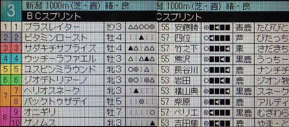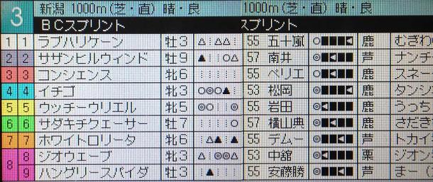 脚質の比率が均等だと新潟1000mでも 差し馬が勝つ事が多いんですね~ 最後まで生き残った逃げ馬には +ポイントをあげてもいいかも(笑)