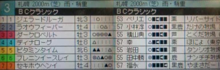 やや重も逃げすぎたかな~っと。 しかしそこは内枠ッコです、なんとかブレニンの 圧力に耐えました~。 ちびる展開です。 あとは黒マスではじけて欲しい! 楽しい馬生であればそれで満足です。