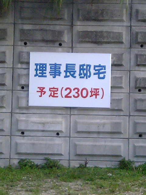なかなか引けないし、生産数もすくないなぁ とりたてて話題といえばインターレースで SeekingtheGold産駒がオープン戦勝ったことぐらいか このナンチチザゴールドはよく賞金くわえてくるいい馬です。 というわけで、今日は別のネタで ふらふらと道を歩いているときに見つける変な看板や展示物を 携帯のカメラで撮るのが好きなんですが、 いくつかあるコレクションの中からひとつ。 これは4年前とある住宅街の空地の壁に張られていました。 こういう意図のわからない看板は大好きです。 どこの理事長なのか、 なんでわざわざ看板立てる必要あるのか さっぱりわかりません ちなみに現在では理事長邸宅が建っているのではなく そのまま屋外月極駐車場になってます。 別の土地に家を建てたのか? 理事長解任になっちゃたのか? なかなか謎が残って楽しいです。 あと、自分は思った以上にダジャレセンス無いようです 困った、こまった、コマンダーインチーフ ...苦しい PR