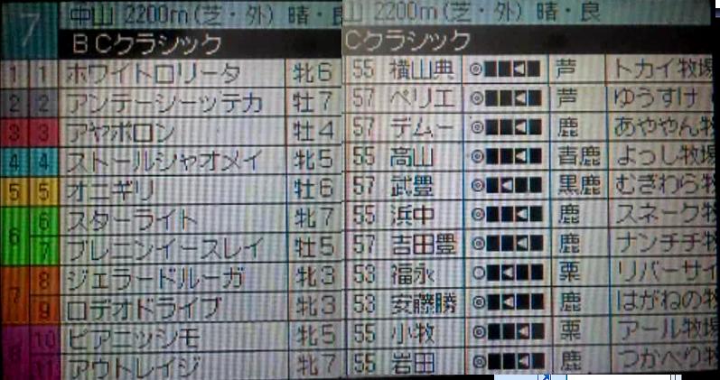 疾走するのか下記の10頭です 03先 ロデオドライブ 予選獲得ポイント 32p 08先 オニギリ 予選獲得ポイント 26p 23差 ブレニンイースレイ 予選獲得ポイント 29p 01差 アンテーシーッテカ 予選獲得ポイント 22p 06差 アウトレイジ 予選獲得ポイント 21p 12差 ピアニッシモ 予選獲得ポイント 22p 09差 ストールシャオメイ 予選獲得ポイント 18p 13先 ジェラードルーガ 予選獲得ポイント 17p 17差 アヤポロン 予選獲得ポイント 16p 10差 ホワイトロリータ 予選獲得ポイント 19p 11差 スターライト 予選獲得ポイント 16p 予選はは14p以上獲得で勝ち抜けでしたが 決勝は1着をとると1戦勝ち抜けですw 続いて外馬状況です ロデオドライブ 4票 ☆疾風のEvans☆さん ☆TSUSHIさん ほにょさん のりっこさん アウトレイジ 2表 ジオングさん サダキチさん アンテーシーッテカ 1票 とくだのおやじさん ホワイトロリータ 1票 ブライアンさん ジェラードルーガ 1票 たけの牧場さん オニギリ 1票 やまとらさん やはりTOP勝ち抜け&これまでの実績から ロデオドライブが4票とダントツの支持率です 続いて2票のアウトレイジが続きます 上手にポイントを稼ぐ馬はどの馬なのか? まずは1Rで勝ち抜けするのはどの馬か? 出走までしばらくお待ちください う~ん、さっきまでPCの調子がおかしかった、大丈夫か? PR